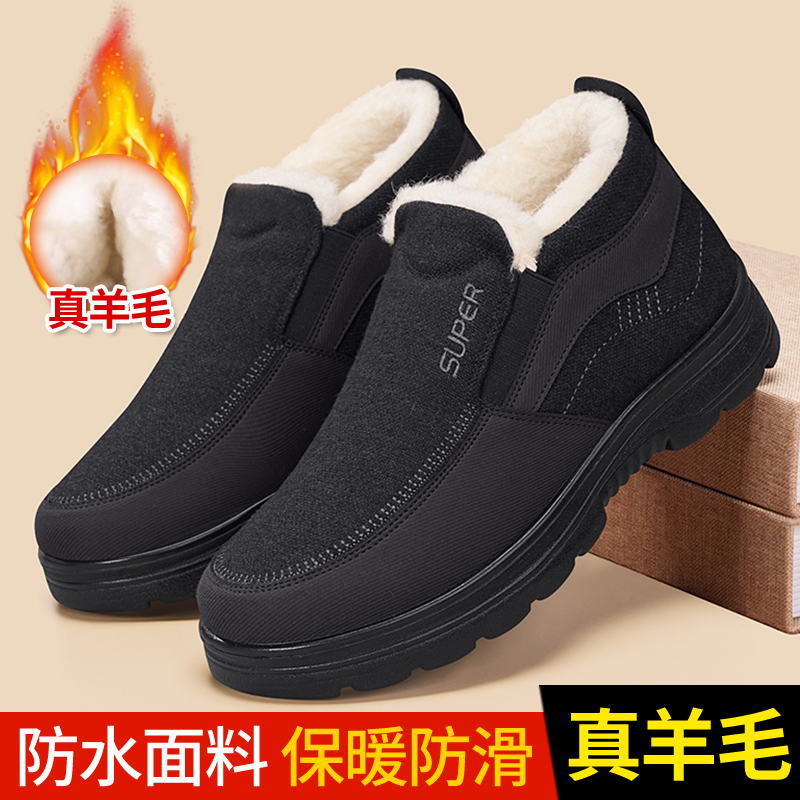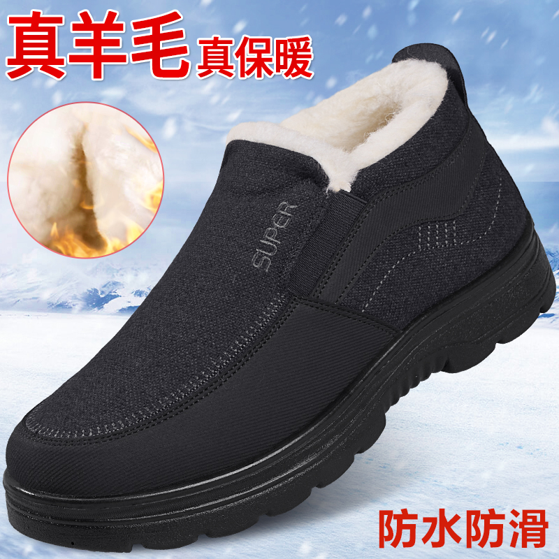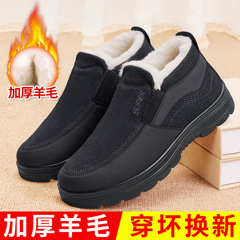 羊毛加绒中老年舒适防滑爸爸棉鞋 男加厚保暖老人鞋 老北京布鞋 冬季