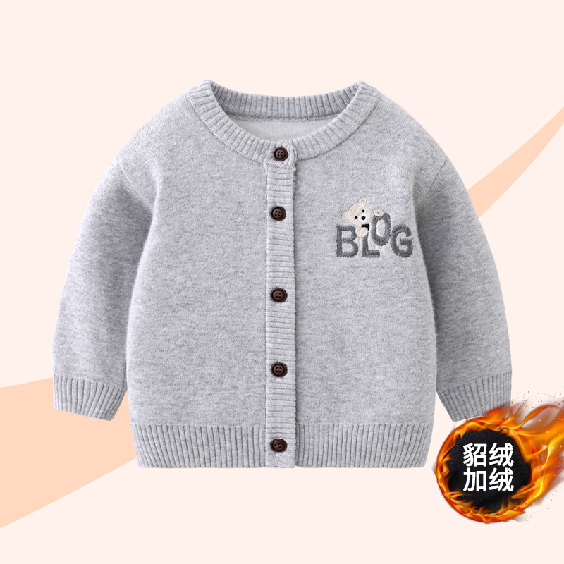女童毛衣秋冬新款 小外套男童洋气上衣潮 纱衣婴儿加厚加绒保暖开衫