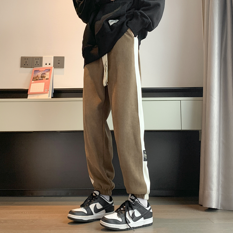 男潮牌高街宽松束脚运动裤 长裤 士夏季 炸街休闲裤 子 薄款 灯芯绒卫裤