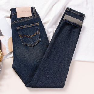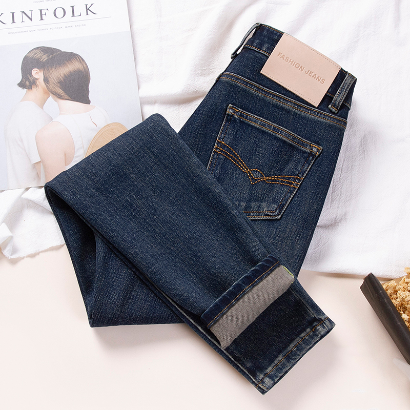 丹宁蓝色防褪色高腰显瘦直筒裤 女2025年春秋新款 子 阔腿牛仔裤 窄版