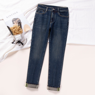 女加绒2025年新款 子女秋冬季 爆款 直筒裤 水泥灰窄版 高腰阔腿牛仔裤