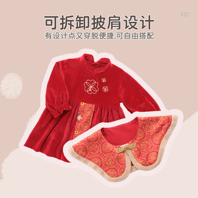 国风裙子250g龙年保暖新年唐装 拉比2024拜年服童装 连衣裙女童中式