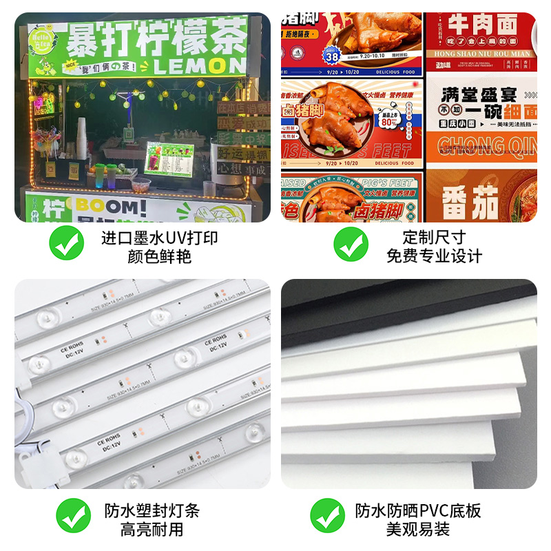 夜市餐车三轮车摆摊小推车专用卡布灯箱uv软膜广告牌小吃车定制做
