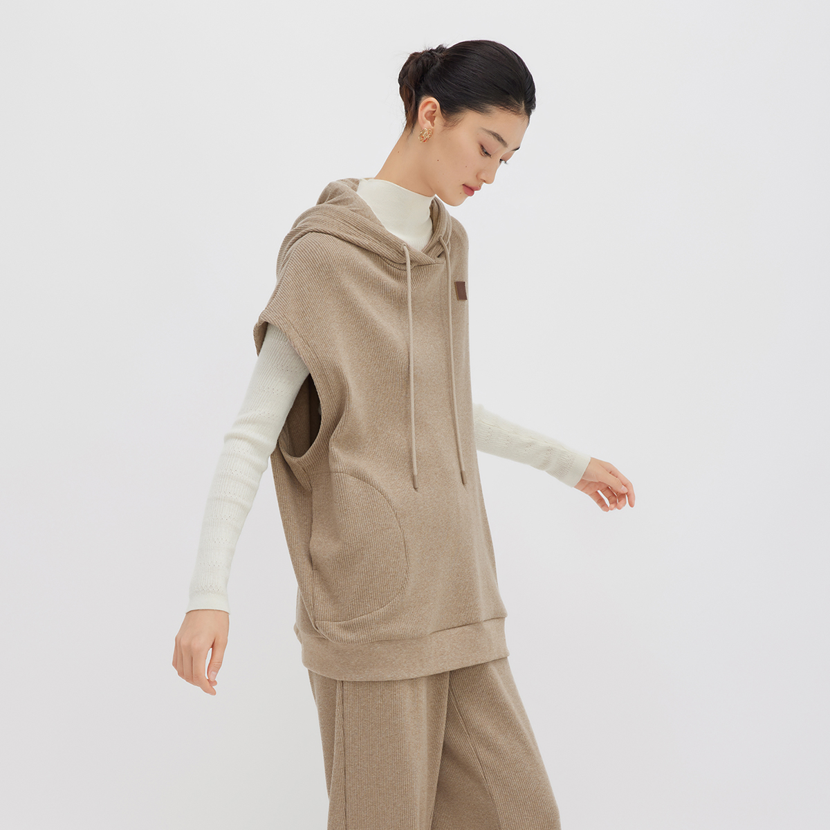 播连帽无袖 休闲宽松小个子时髦叠穿外套BDQ4VD0884 卫衣女商场同款