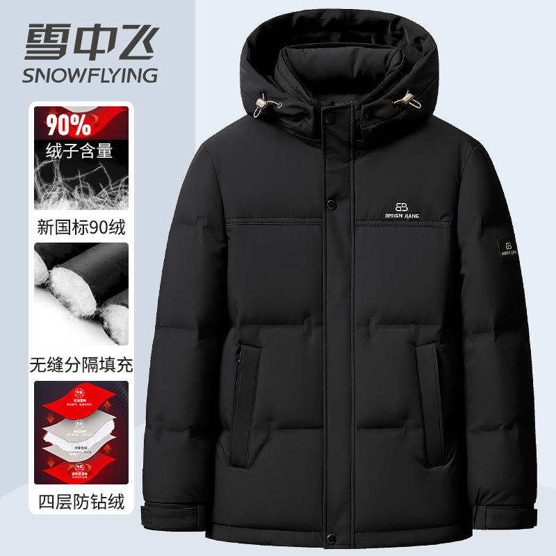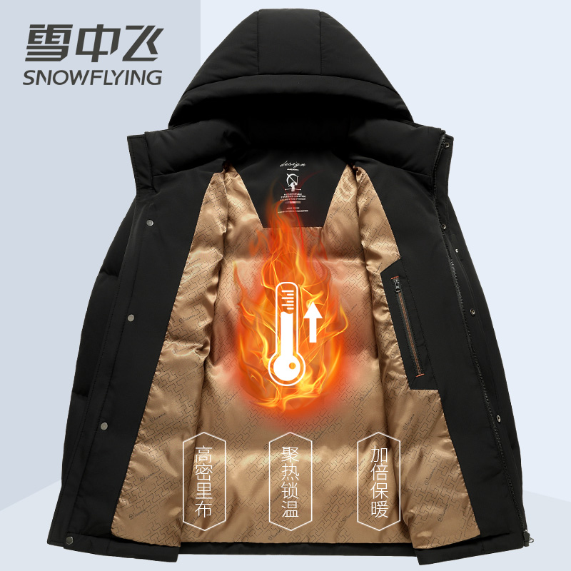 雪中飞羽绒服男款 连帽加厚保暖鸭绒服拼色休闲百搭中青年冬天外套