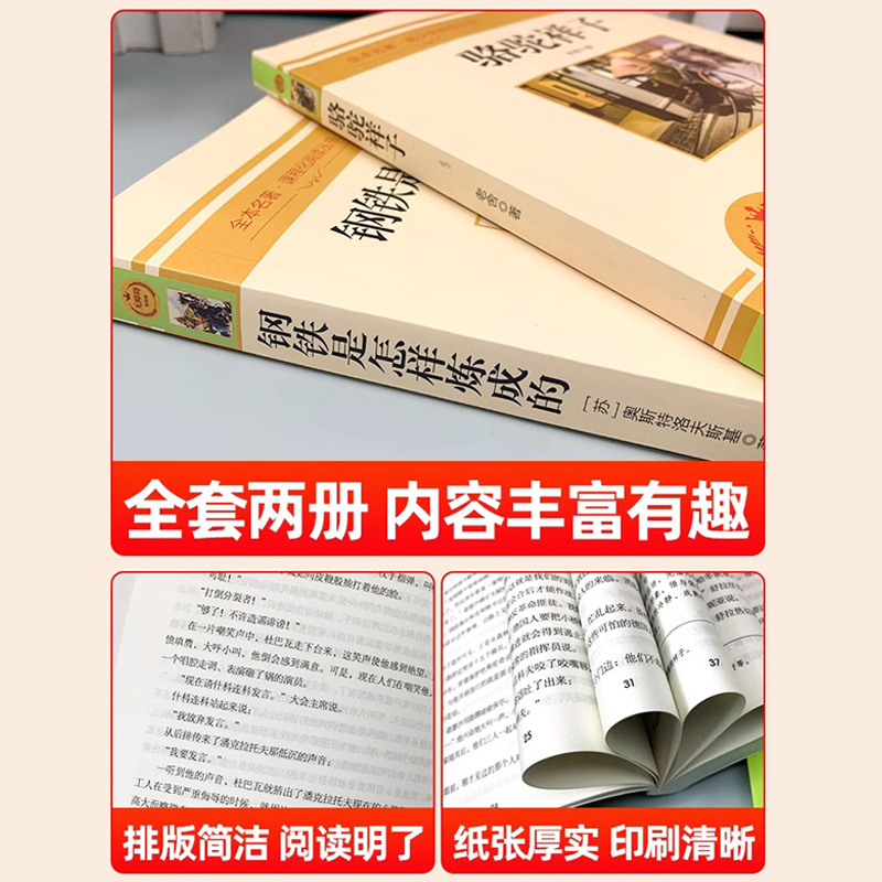两册骆驼祥子和钢铁是怎样炼成 经典 正版 阅读课外书籍初中版 名著初中生课外阅读书籍 原著老舍七年级下册必读名著课外书推荐 完整版