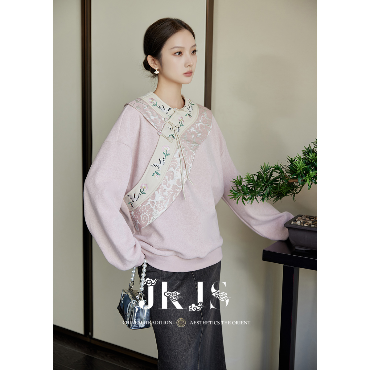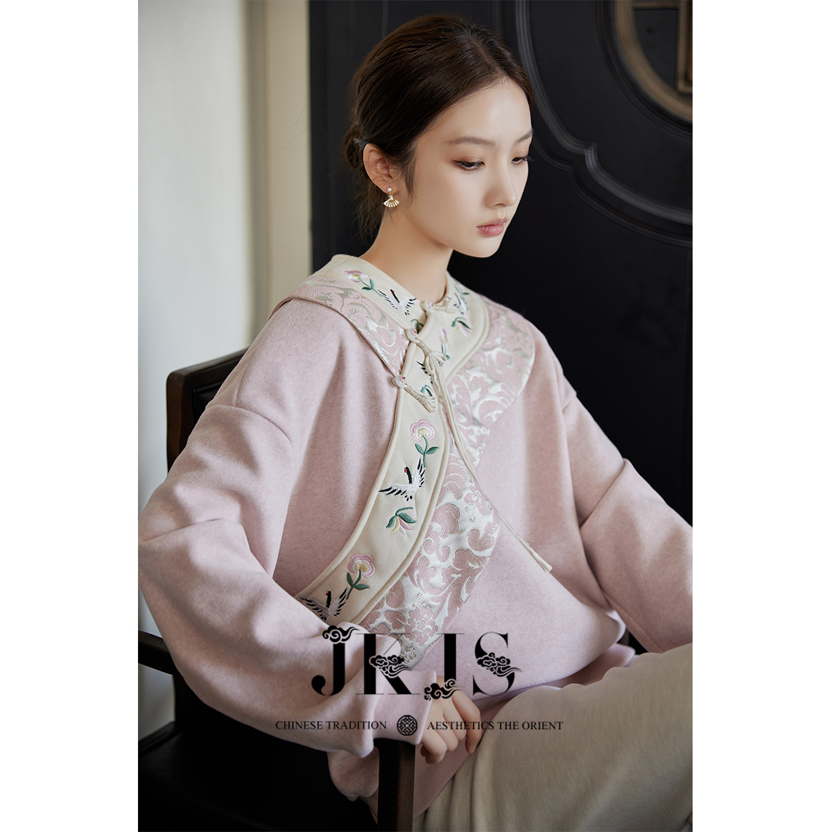国风上衣 敲柔绒感卫衣女秋冬加绒加厚外套新中式 JKJS 繁花素锦