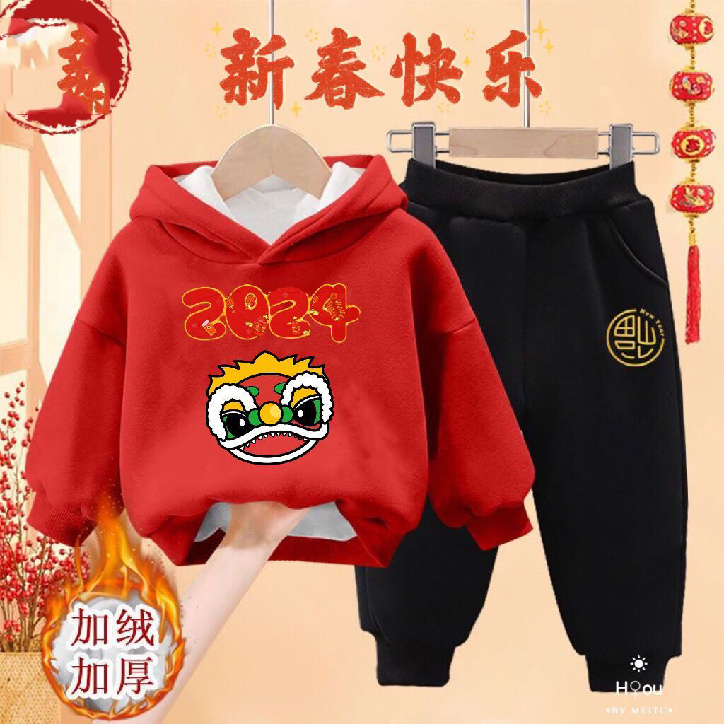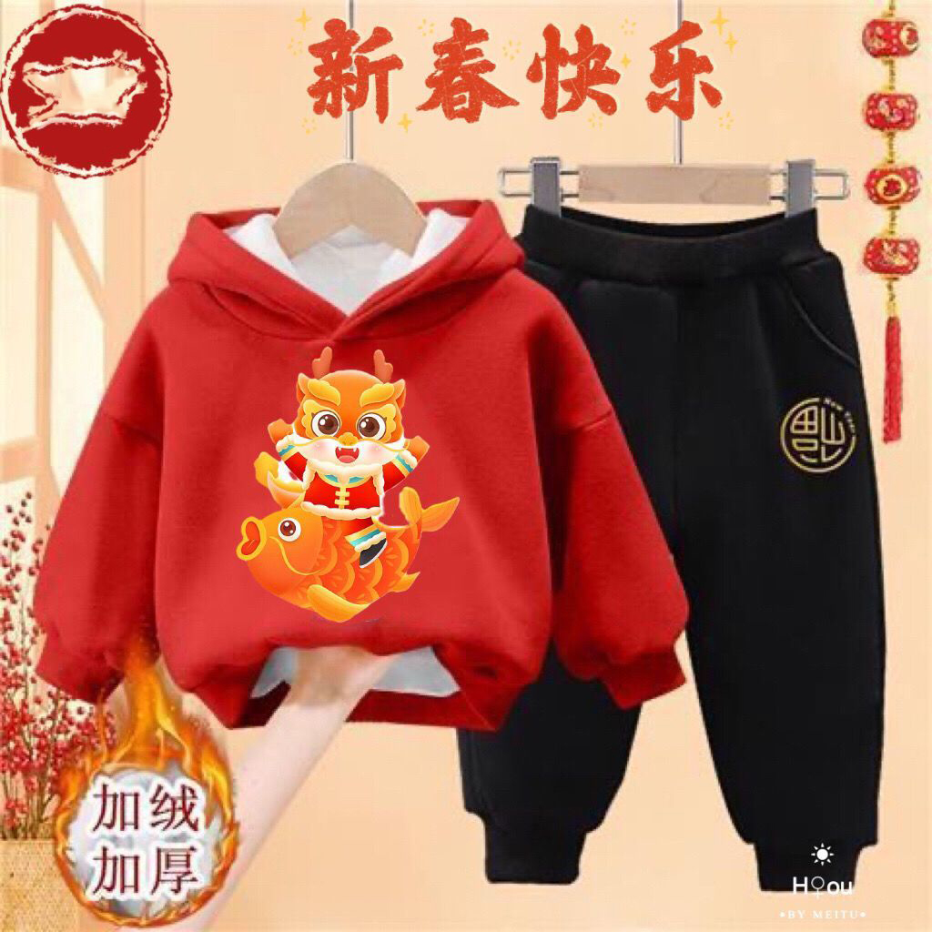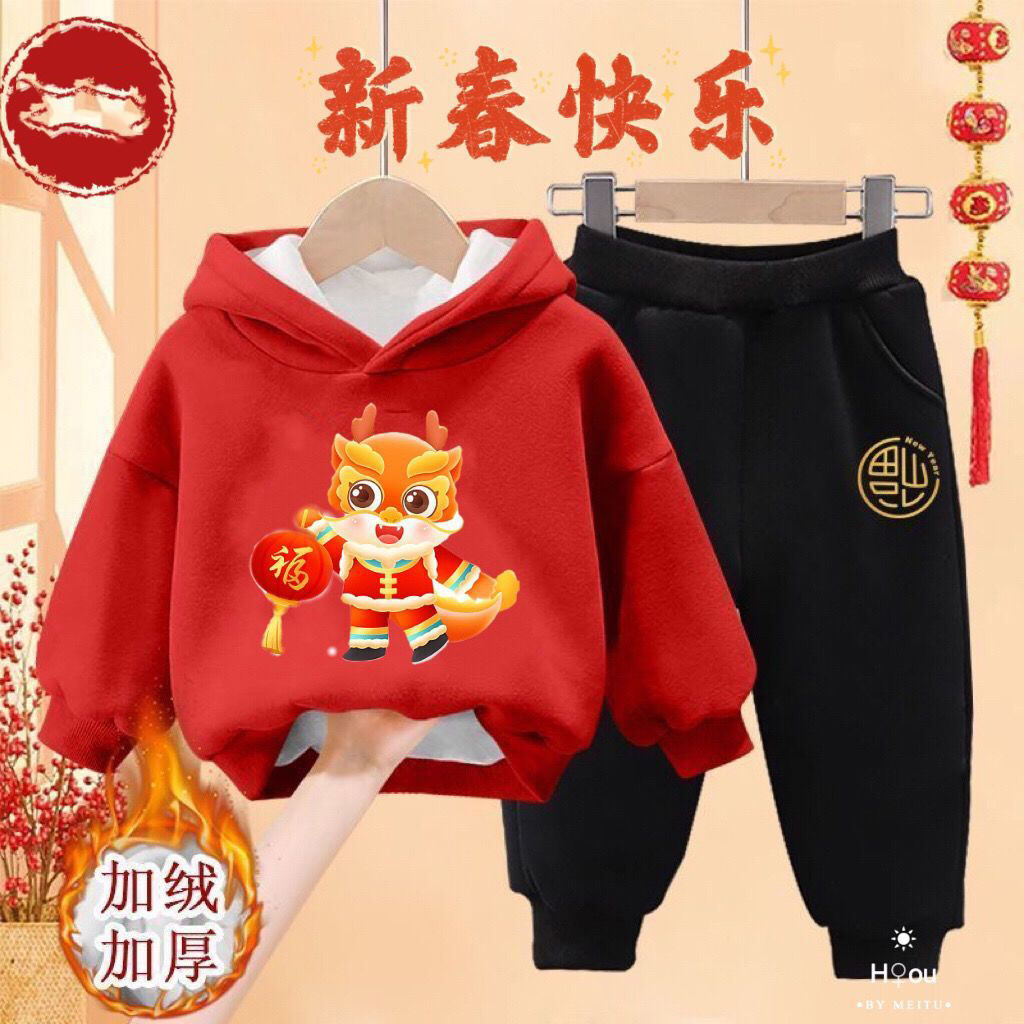 巴拉妮琪balaniqi男女童秋冬2025新款 加绒卫衣打底衣冬 拜年服套装