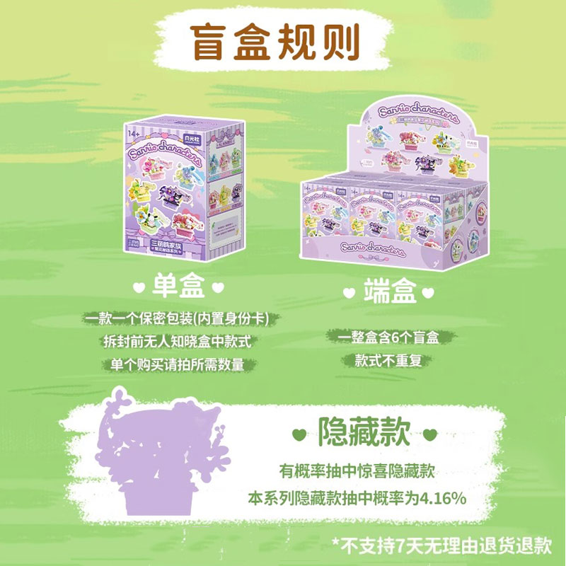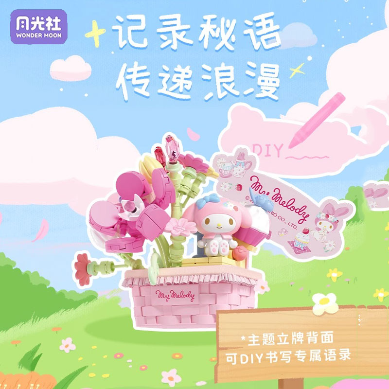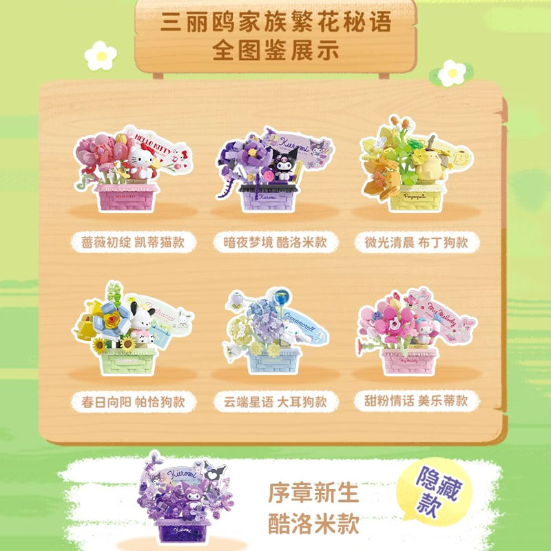 月光社三丽鸥繁花秘语积木盲盒hellokitty库洛米美乐蒂女生日礼物