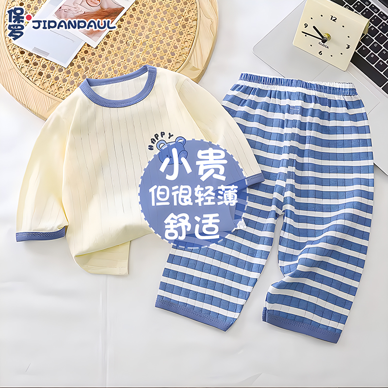 套装 纯棉七分袖 男女宝宝睡衣婴儿衣服 儿童空调家居服薄款 婴童夏装