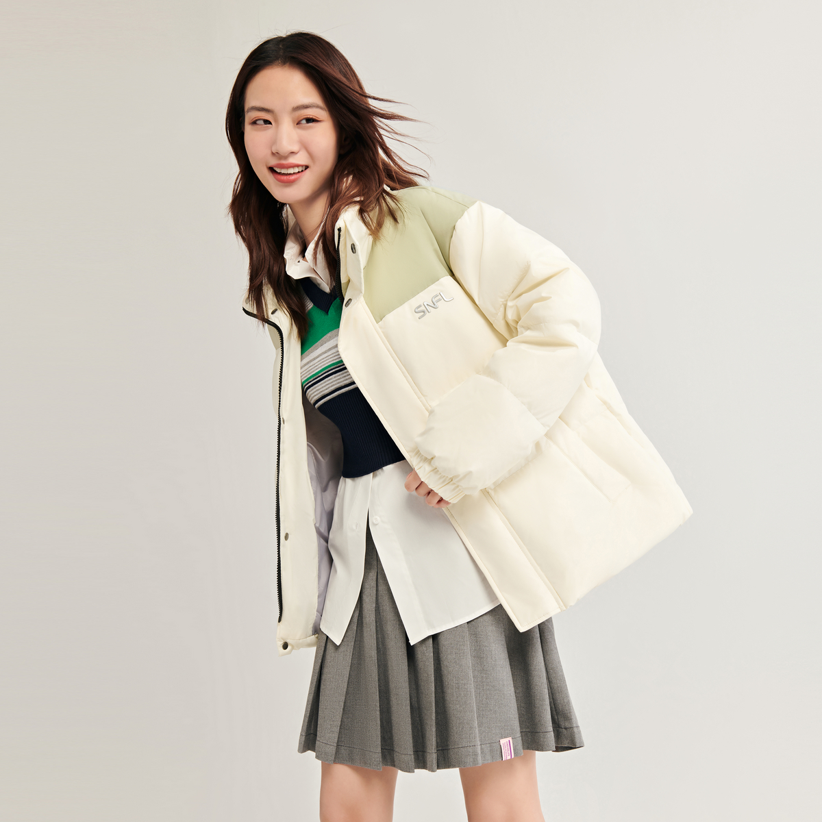 拼接薄款 时尚 户外运动保暖外套 轻薄羽绒服女2025秋冬新款 雅鹿短款