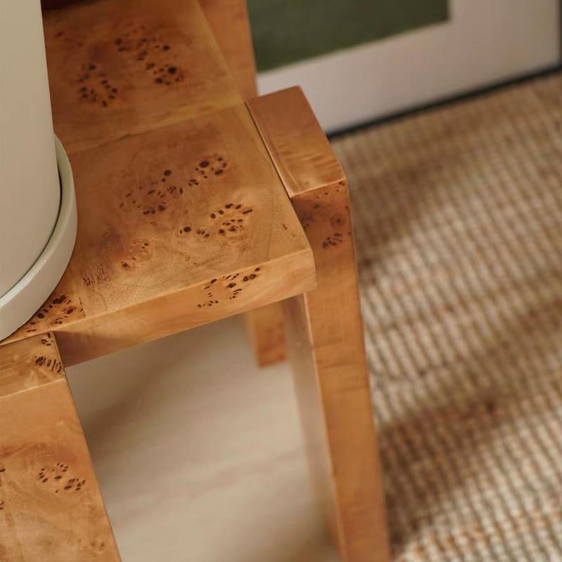 进口艺术底座金丝瘤木纹边几高级感餐凳换鞋 凳沙发边置物桌床头柜