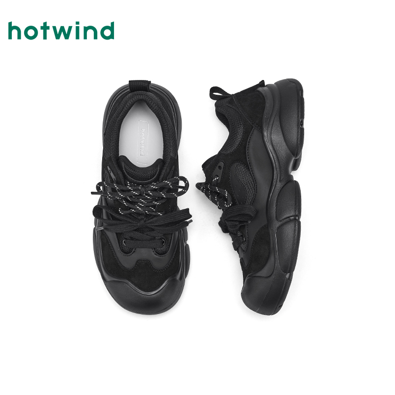 女款 黑色慢跑鞋 2025年秋季 百搭运动休闲鞋 子 新款 热风厚底休闲鞋