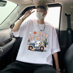 ins宽松半袖 新款 纯棉圆领青年上衣 T恤男夏季 港风chic卡通印花短袖