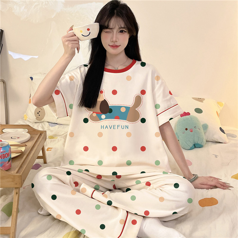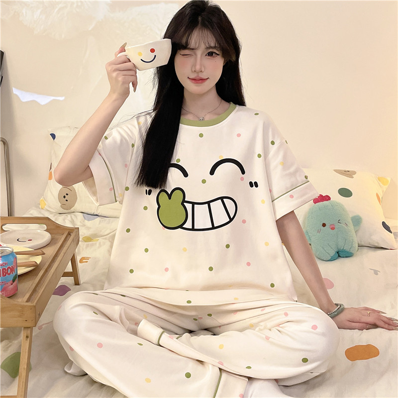 初中学生甜美可爱家居服套装 女孩中大童纯棉睡衣夏季 长裤 短袖 薄款