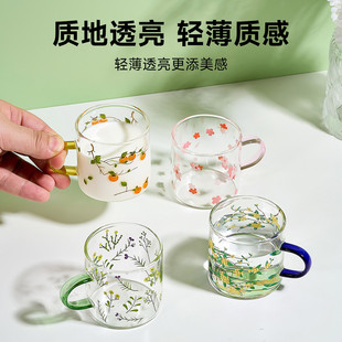 玻璃儿童牛奶杯迷你小水杯子微波炉可加热奶耐高温带把手 自营