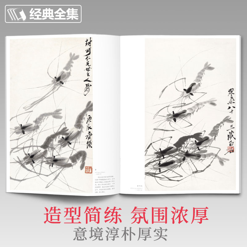 四卷山水人物 齐白石画集4册 三卷鱼虾蟹 二卷果蔬 8开画册写意范本书籍虫草牡丹荷花中国画技法教材教程 一卷花鸟