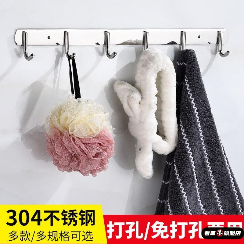 不锈钢连排挂钩厨房墙壁排钩浴室挂衣架可打孔强力承重304一排钩