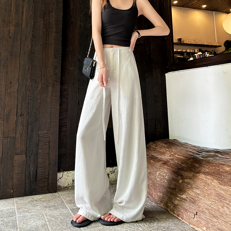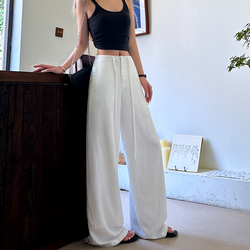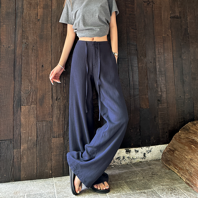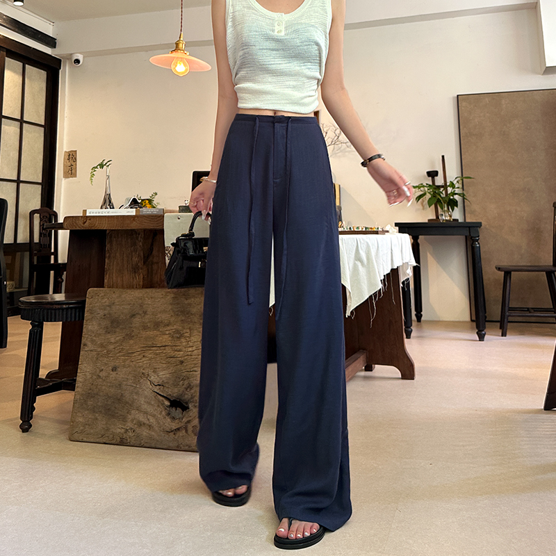 人字纹垂感阔腿裤 轻薄透气直筒裤 女夏季 藏青莱赛尔凉感天丝亚麻裤