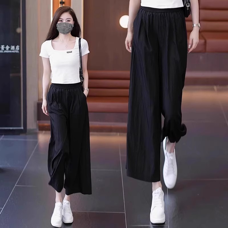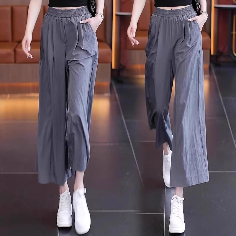 宽松显瘦高腰垂感休闲裙裤 清仓捡漏 女夏季 八分阔腿裤 子 冰丝薄款