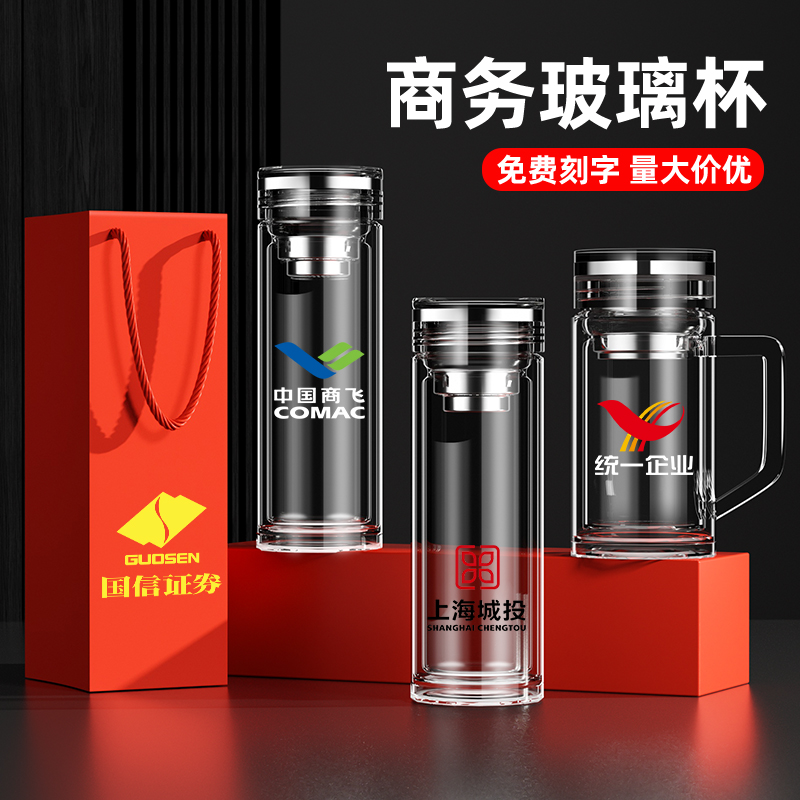 高档水晶玻璃杯定制logo礼品印字双层水杯子订制做广告杯开业活动
