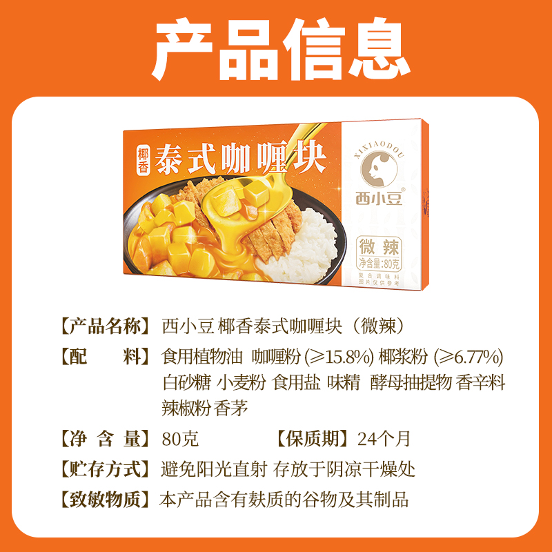 西小豆微辣泰式 椰香咖喱块速食调料家用料理牛肉鸡肉咖喱炒饭