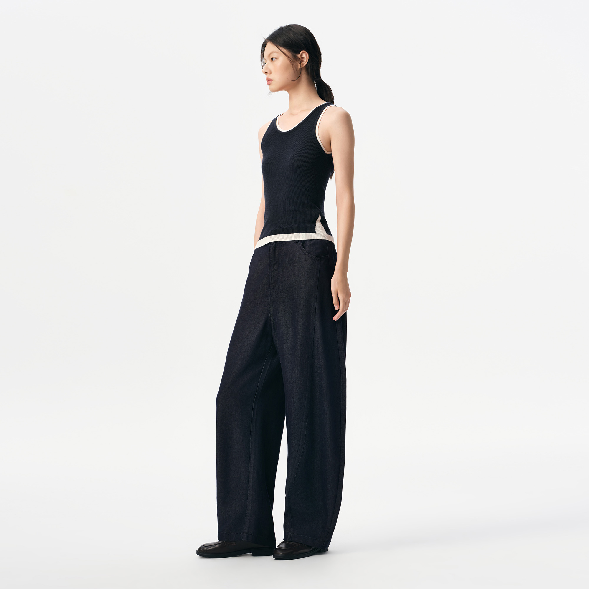诗凡黎经典 25秋女伊芙丽outlets店 水洗磨毛直筒高腰显瘦牛仔长裤