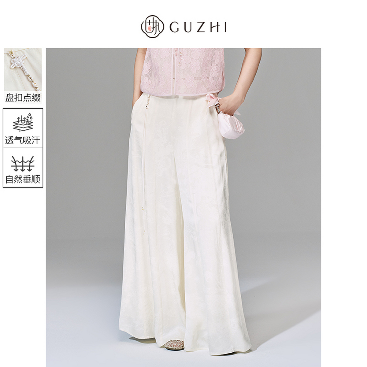 阔腿裤 固执2025秋季 吊坠盘扣气质提花高腰宽松休闲长裤 新中式 新款