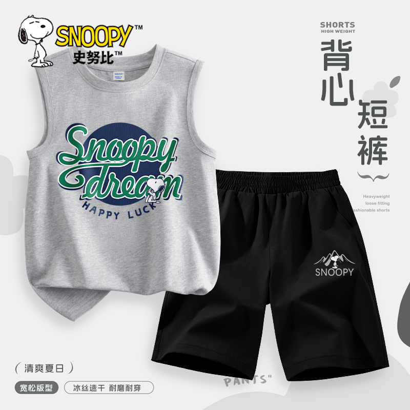 男孩五分短裤 运动服2025新款 冰丝速干 男童夏装 史努比儿童背心套装