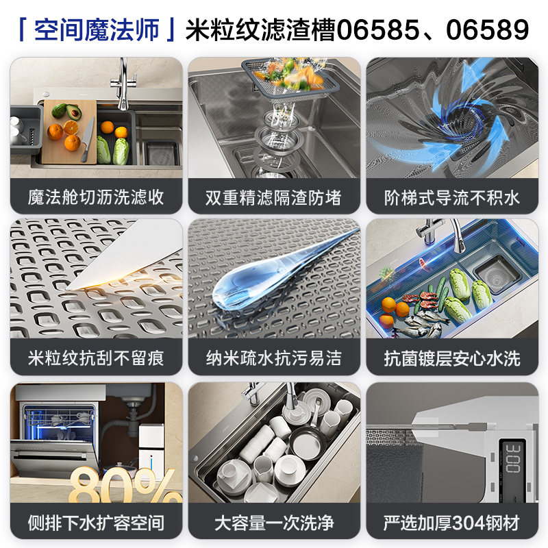 九牧卫浴厨房水槽水槽洗菜盆304不锈钢纳米家用大单槽洗碗台下盆
