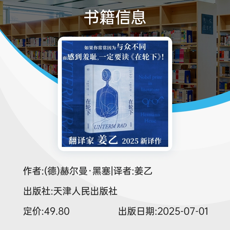 创作生涯早期 诺贝尔文学奖得主成名作 半自传体小说 悉达多 文学散文 在轮下 译者姜乙2025新译作德文无删节直译 赫尔曼黑塞著