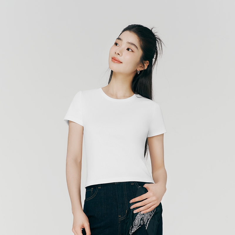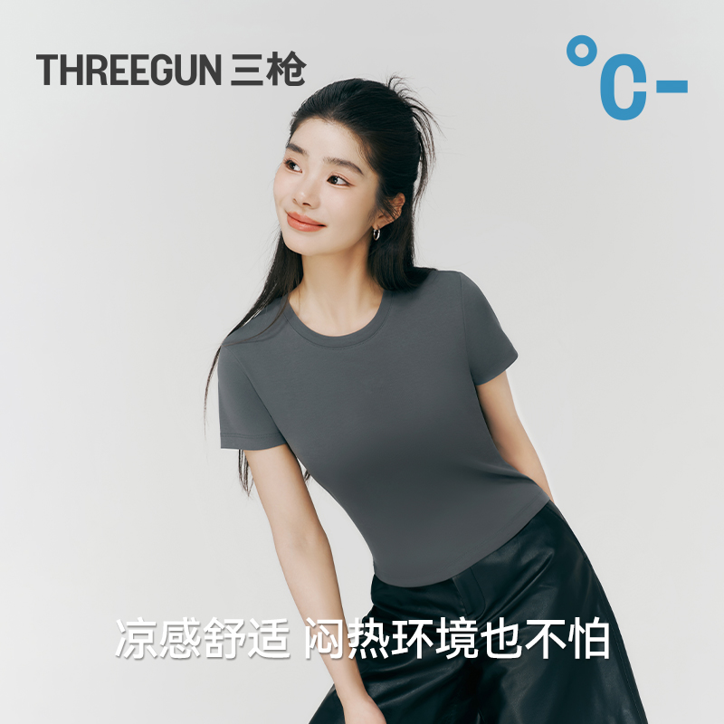 女纯棉罗纹凉感抗菌T恤圆领正肩薄款 短袖 三枪夏季 上衣 冰立方