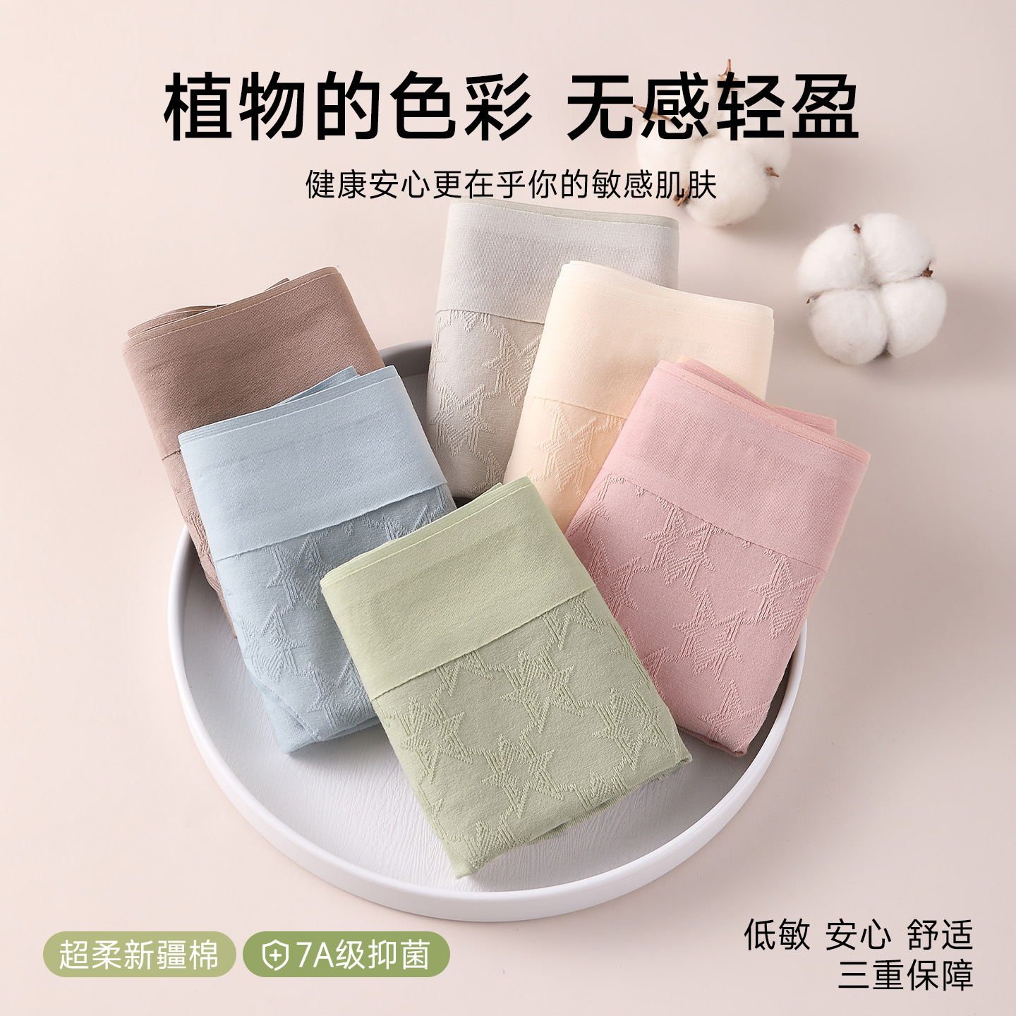 有棵树纯棉内裤 女生桑蚕丝抗菌裆无痕中腰透气舒适2025新三角短裤