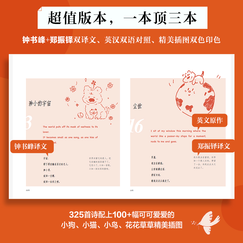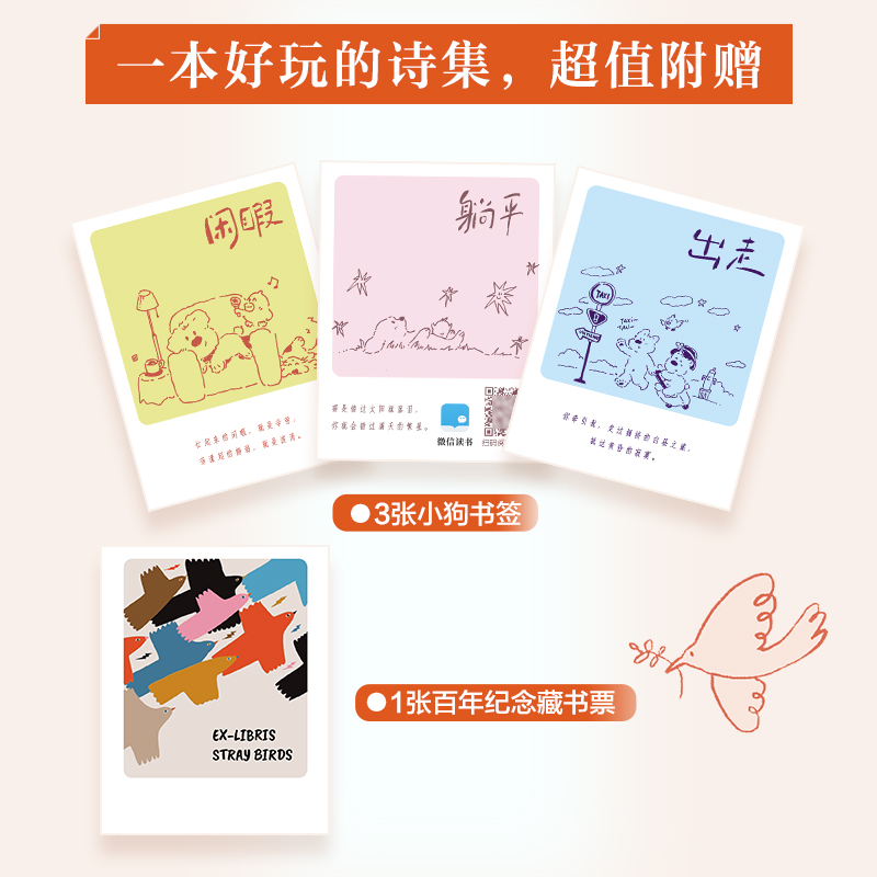 飞鸟集 中英双语典藏版 人民邮电出版 附赠3张小狗书签 社畅销书籍排行榜 小狗疑心大宇宙新月集 1张藏书票 泰戈尔诗集 钟书峰译