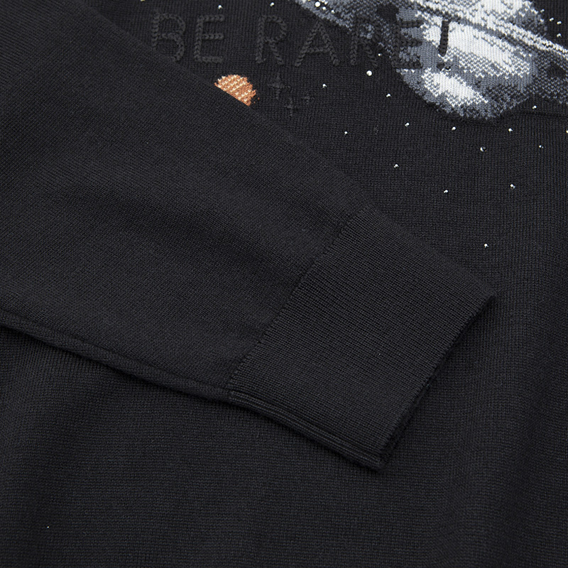 毛衫 RARE威雅男装 黑色长袖 前胸彩色星球牙刷绣工艺男士 秋冬新款