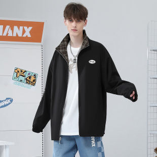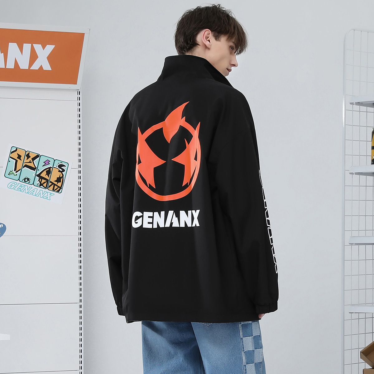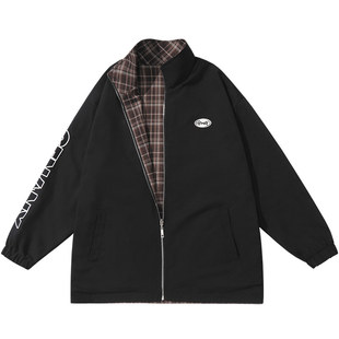 高街格纹夹克 新款 GENANX闪电潮牌两面穿外套情侣款 拉链运动风秋季