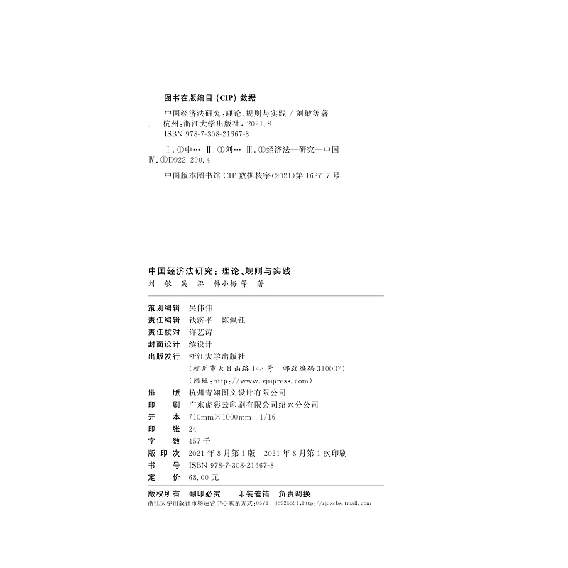 吴泓 韩小梅 浙江大学出版 规则与实践 社 陈佩钰 刘敏 钱济平 中国经济法研究:理论 责编