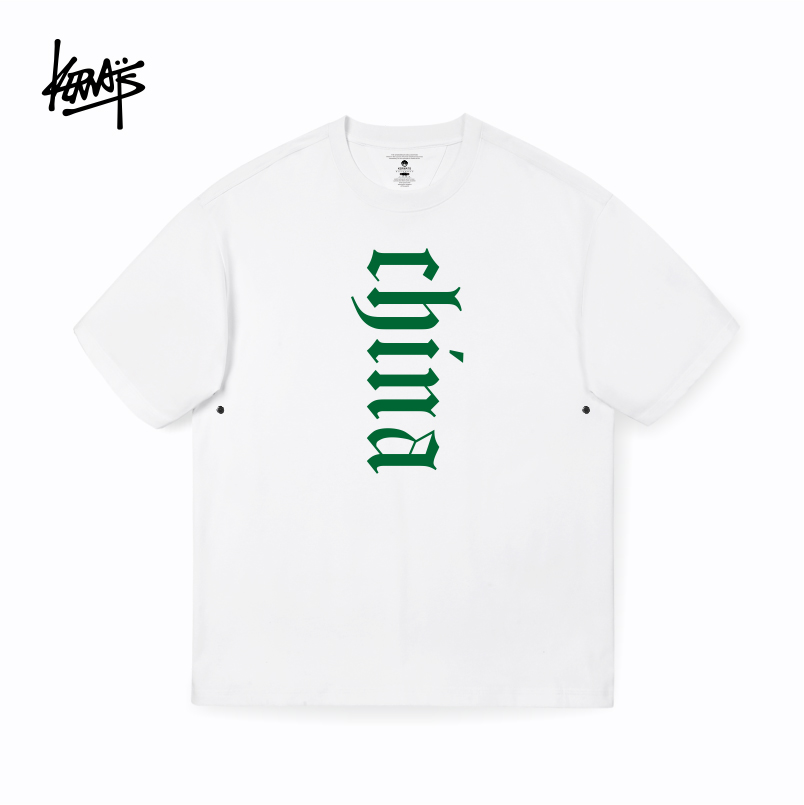 KERWATS韩板潮流英文胸花大码 重磅情侣t恤学生男女无性别落肩短袖
