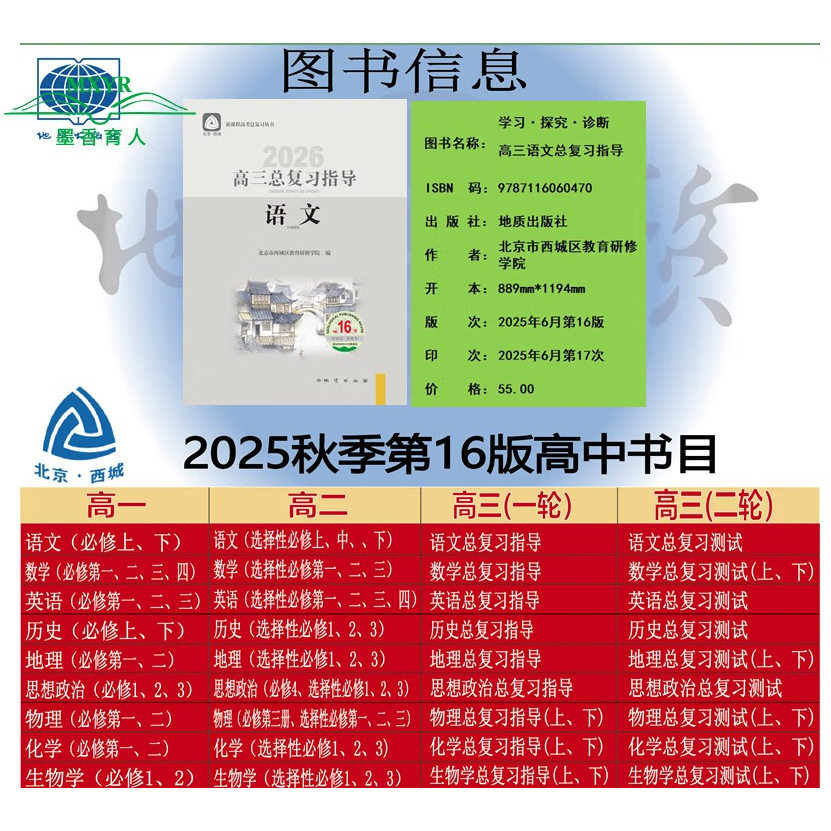 第16版 高三语文总复习指导 北京市西城区教育研修学院编 学习探究诊断 新课程高考总复习 2026 高3高考语文总复习 北京西城