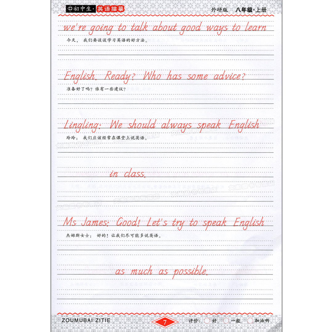 三起外研版 英语初中8年级课本同步英文练字帖初二邹慕白英语达标写字课课练本 八年级上册下册英语字帖国标体小学生外研社外研版