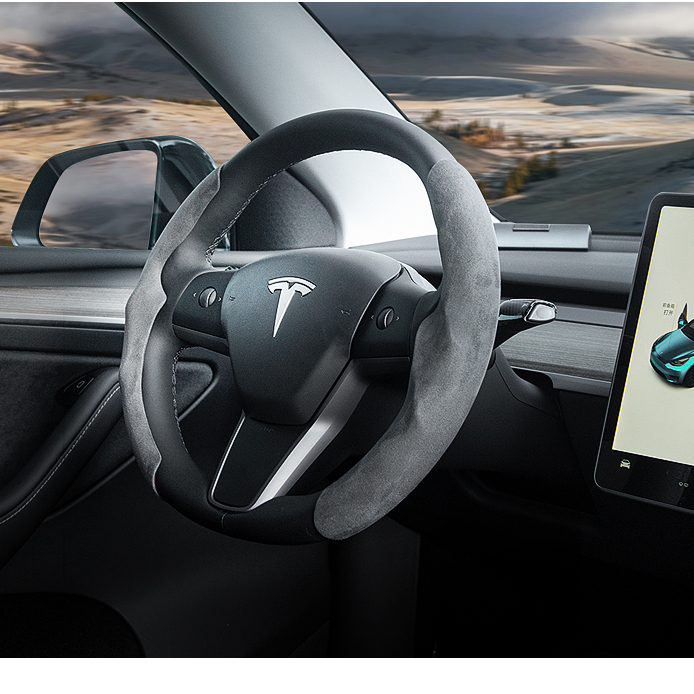 配件翻毛皮 饰改装 TUSK特斯拉焕新版 model3Y方向盘套丫车内饰装