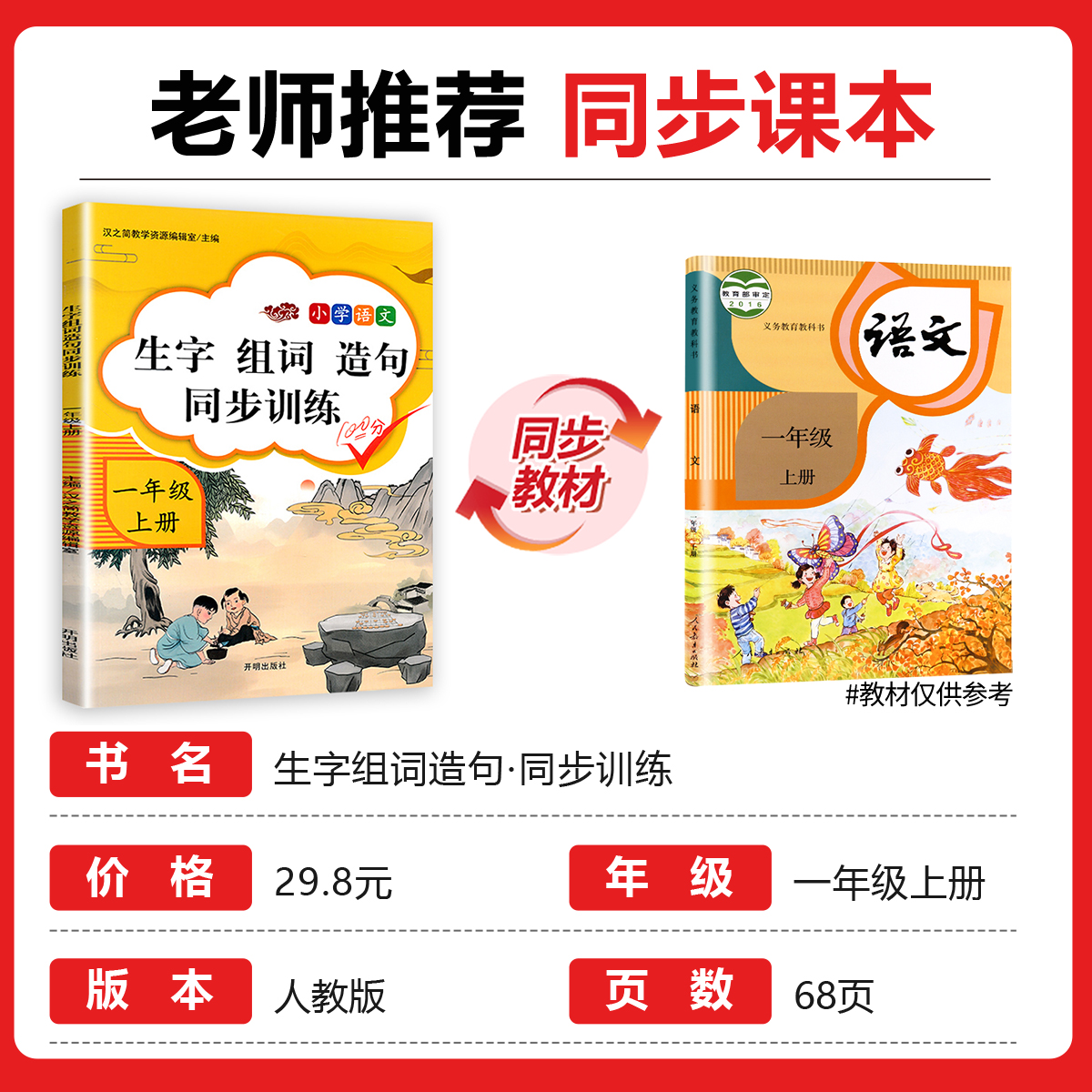 一年级生字组词造句同步训练上册人教版 课本教辅上 字词句段训练题默写能手连词成句小学生1年级上学期语文专项训练统编教材部编版