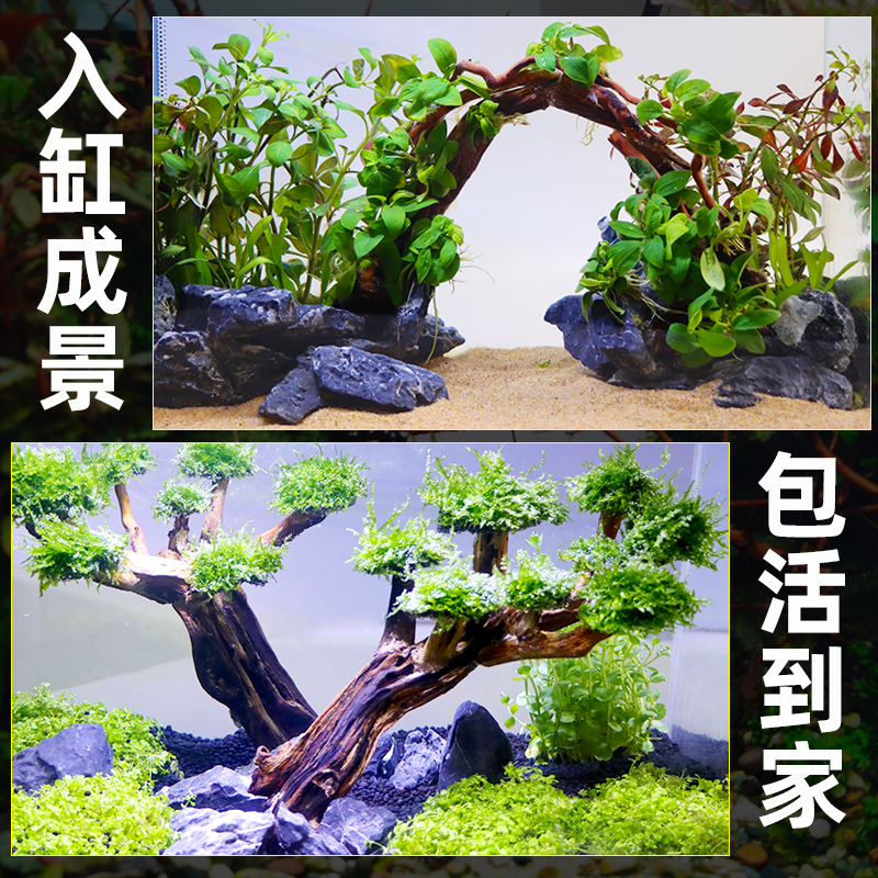 鱼缸水草植物前后景新手懒人造景套餐真水草活体水榕沉木莫斯装 饰