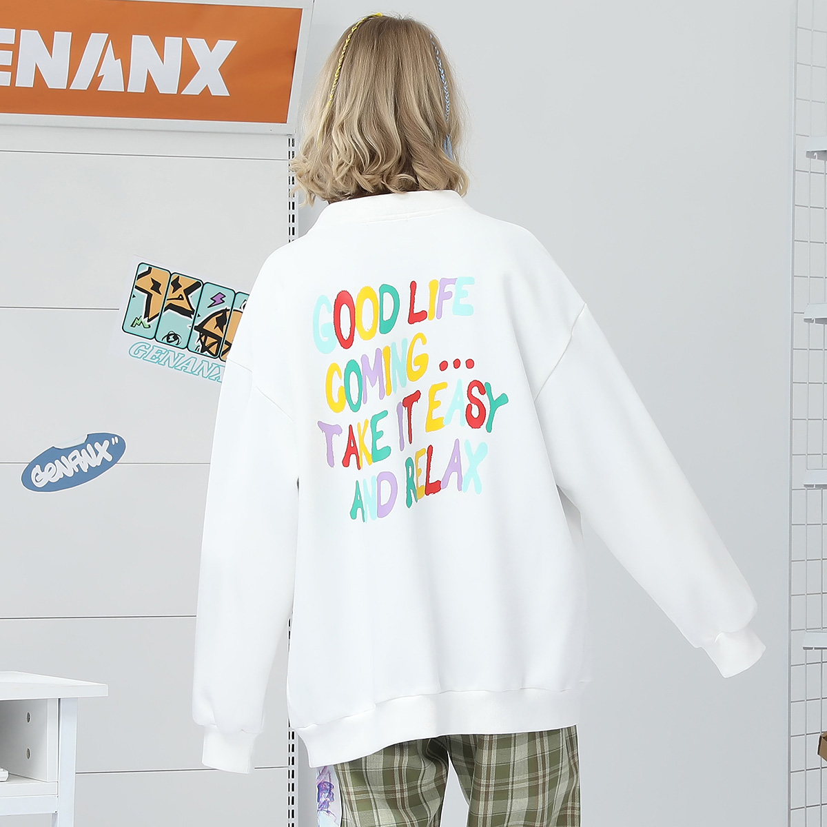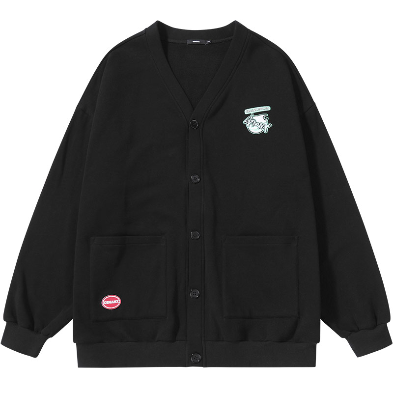 加绒外套 情侣款 GENANX闪电潮牌v领开衫 纽扣胸章刺绣夜光印花新款