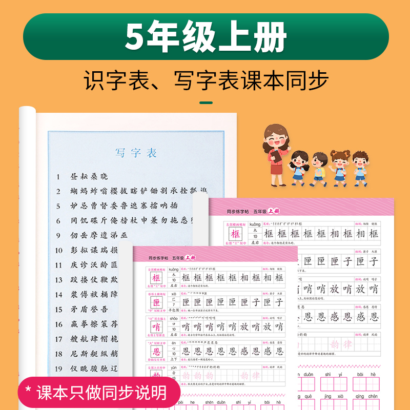 五年级上册同步字帖人教版 每日一练 小学语文同步教材练字帖写字课课练5年级下小学生课本生字练习上学期一课一练钢笔习字帖部编版