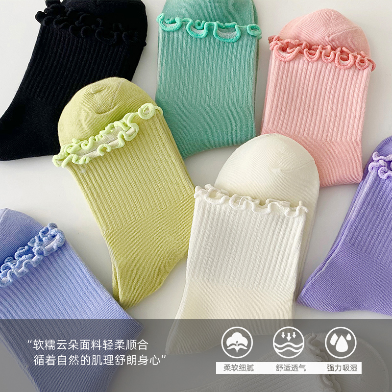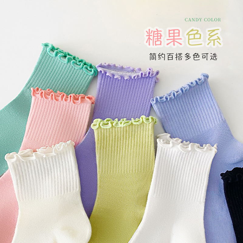花边袜子女中筒袜秋季 纯棉长袜日系jk少女春秋白色女士长筒袜 薄款