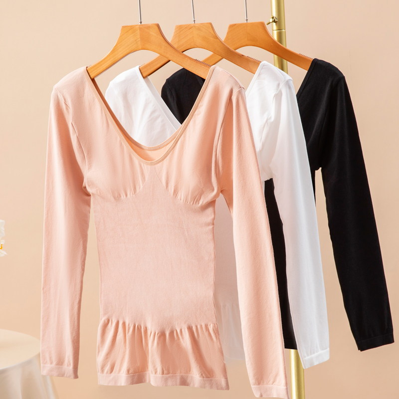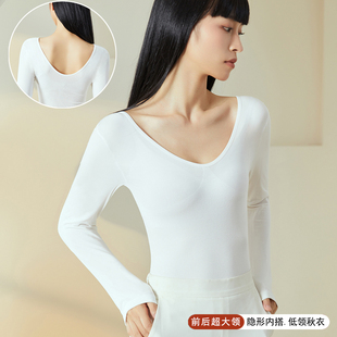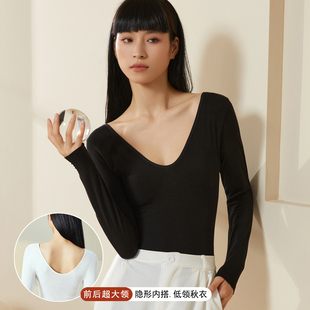 内搭肉色打底衫 T恤女春秋冬季 上衣潮 U领长袖 大领口设计感小众修身