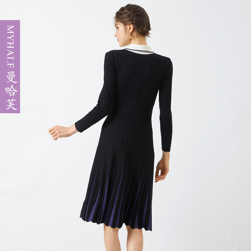 A3FAF3263 太平鸟莱赛尔绵羊毛混纺针织连衣裙女长袖 商场同款