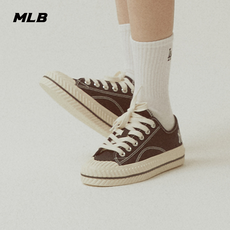 舒适低帮运动休闲鞋 MLB官方 饼干鞋 帆布鞋 黑白SHP1 男女情侣经典