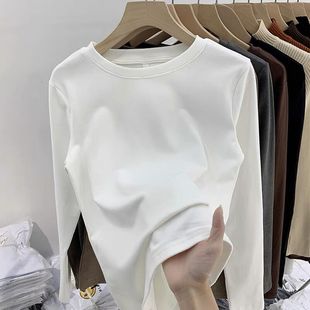 显瘦内搭加绒加厚长袖 纯色修身 上衣 女2025秋冬新款 德绒圆领打底衫